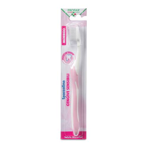 SPAZZOLINO GENGIVE SENSIBILIDescrizione Con testina compatta e arrotondata dalle setole morbide perfettamente arrotondate e microfini. Ideale in caso di gengive delicate e irritate. Formato 1 pezzo.